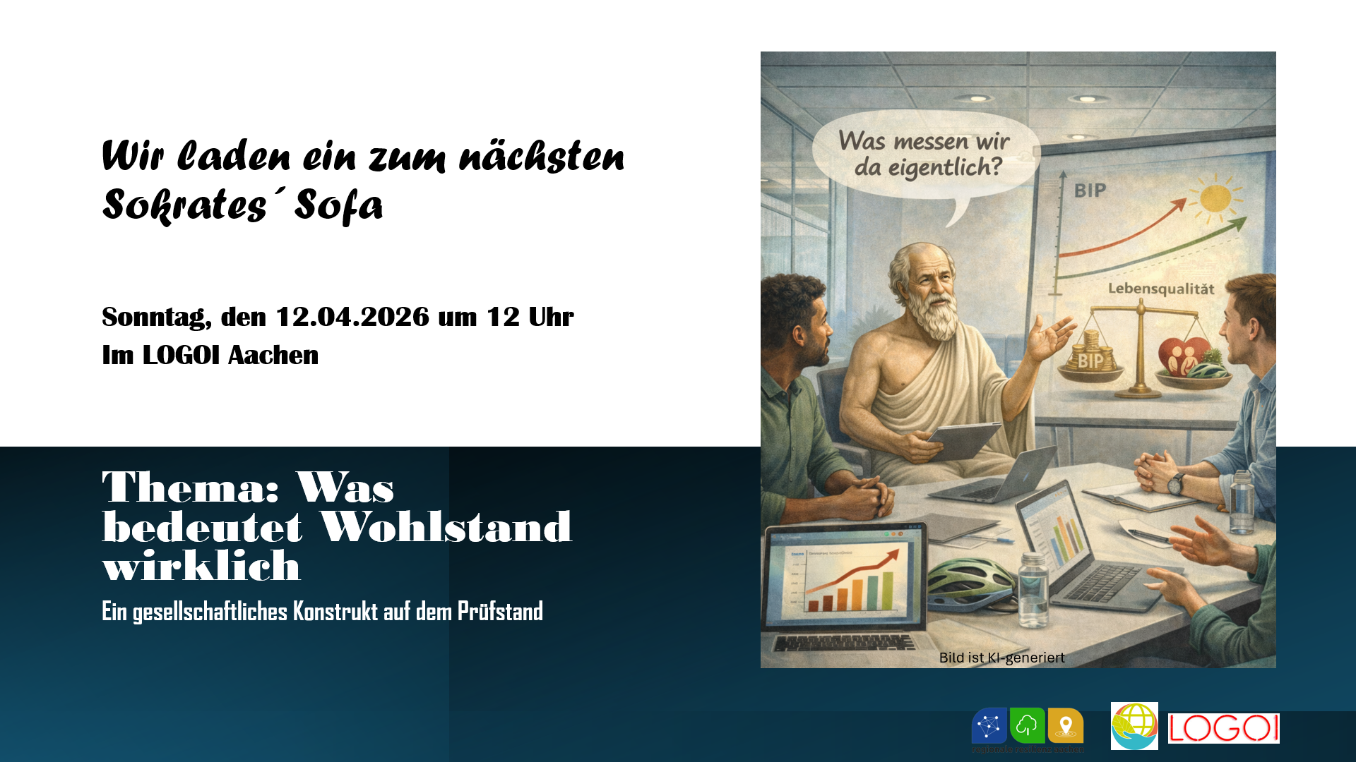 Bei Sokrates’ Sofa wollen wir gemeinsam der Frage nachgehen, was Wohlstand heute bedeutet und wie ein zukunftsfähiges Wohlstandsmodell aussehen könnte. Braucht ein neues Verständnis von Wohlstand auch den Mut zur Veränderung?